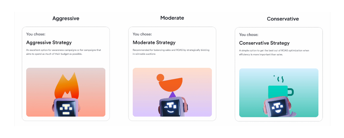 The bidding strategy picker worked. You'd select an option—Conservative, Moderate, Aggressive—and the card would highlight to confirm your choice. Clean, clear, functional. It was fine, but great is where we land.