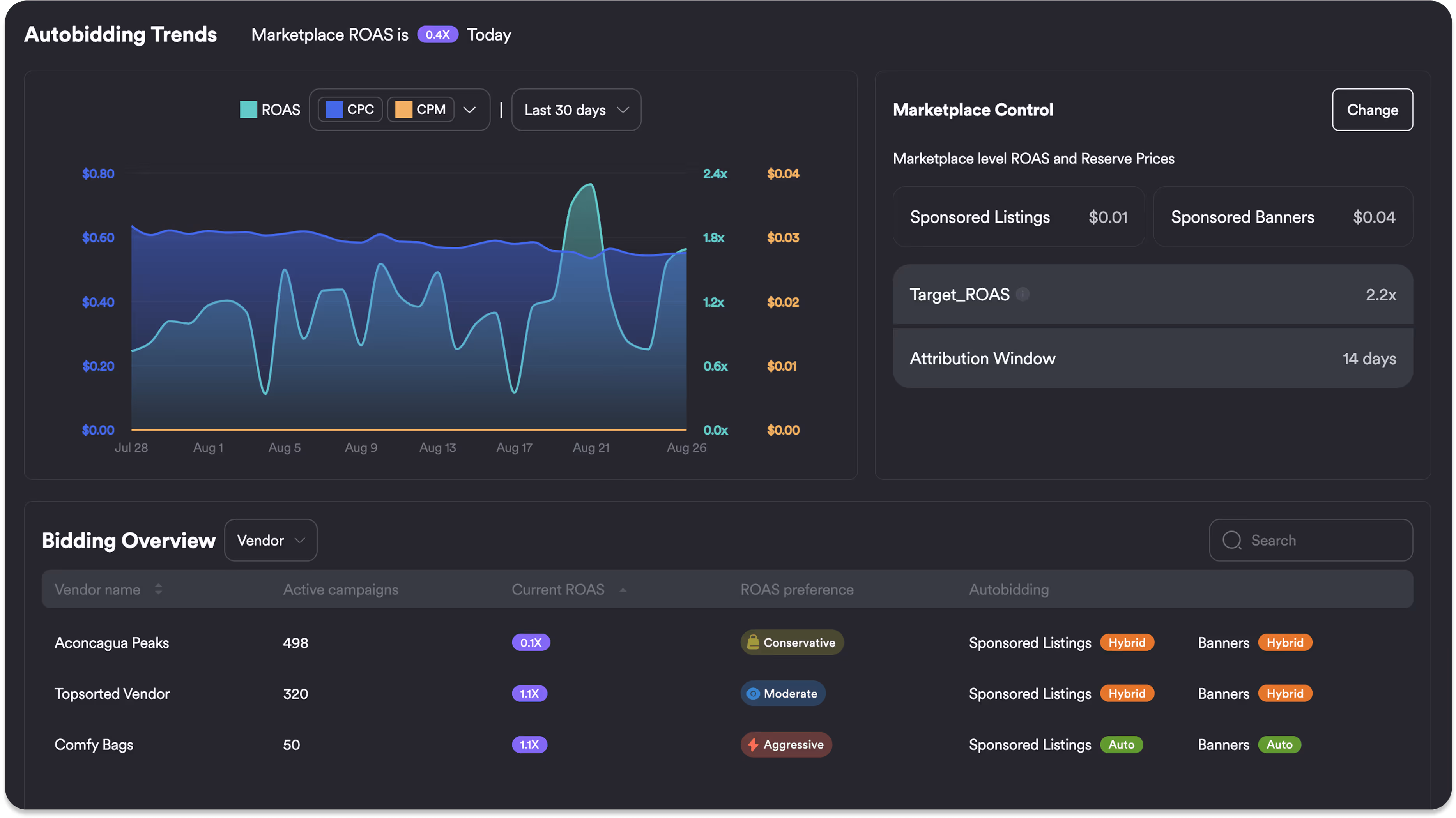 Isso garante que seus lances de anúncios permaneçam em andamento mesmo com a mudança da dinâmica do mercado. Independentemente de os concorrentes ajustarem suas ofertas, picos de intenção de compra ou mudanças de estoque, o sistema pode se adaptar instantaneamente recalibrando os lances para se manter eficiente e competitivo.